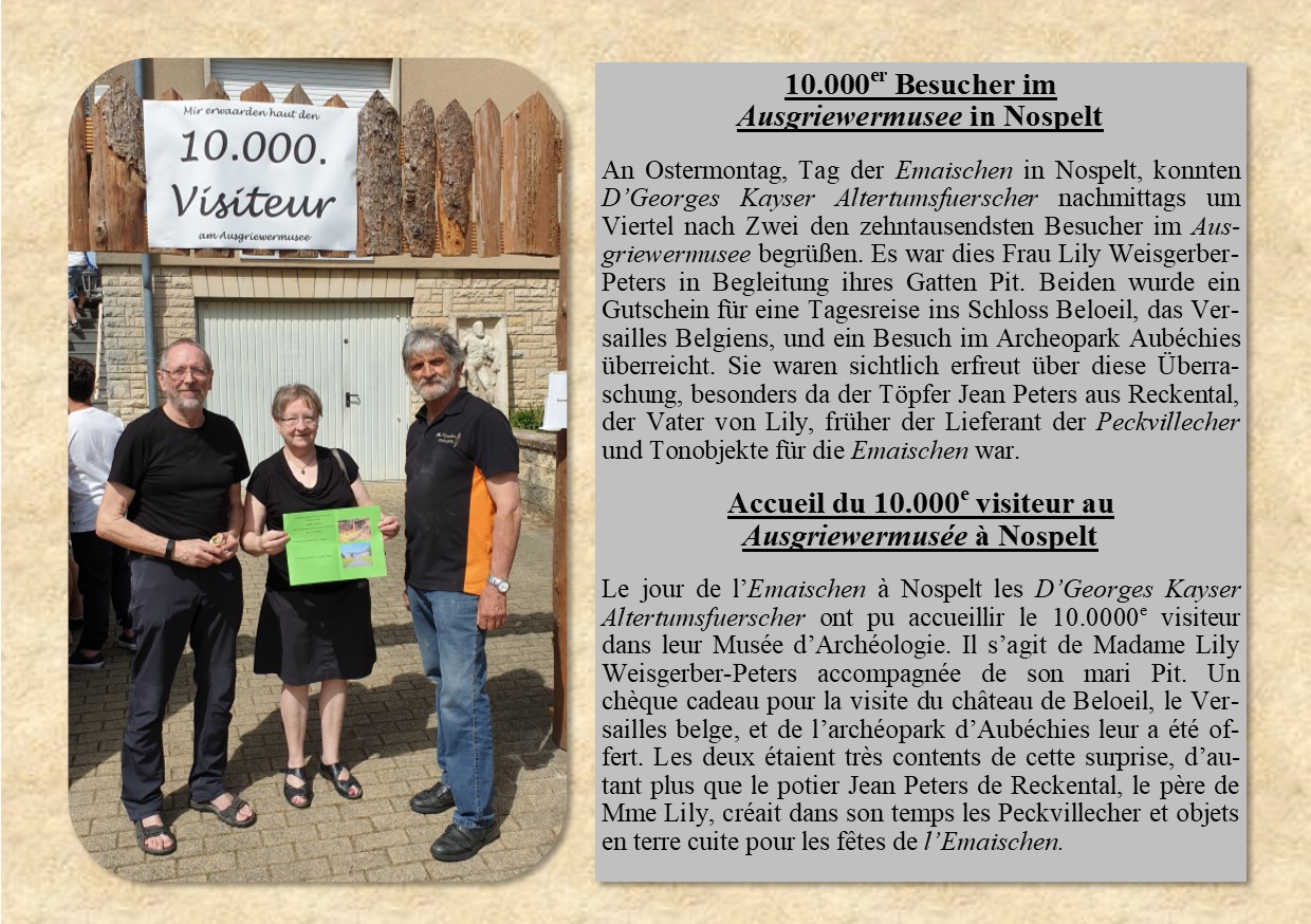 “ D'Georges Kayser Altertumsfuerscher sind ein in Nospelt ansässiger Verein der sich der Archäologie verschrieben hat „