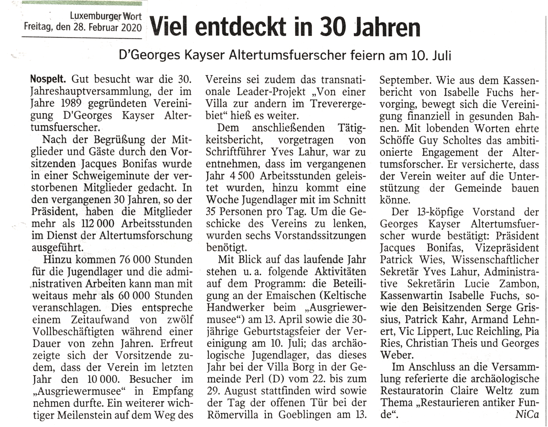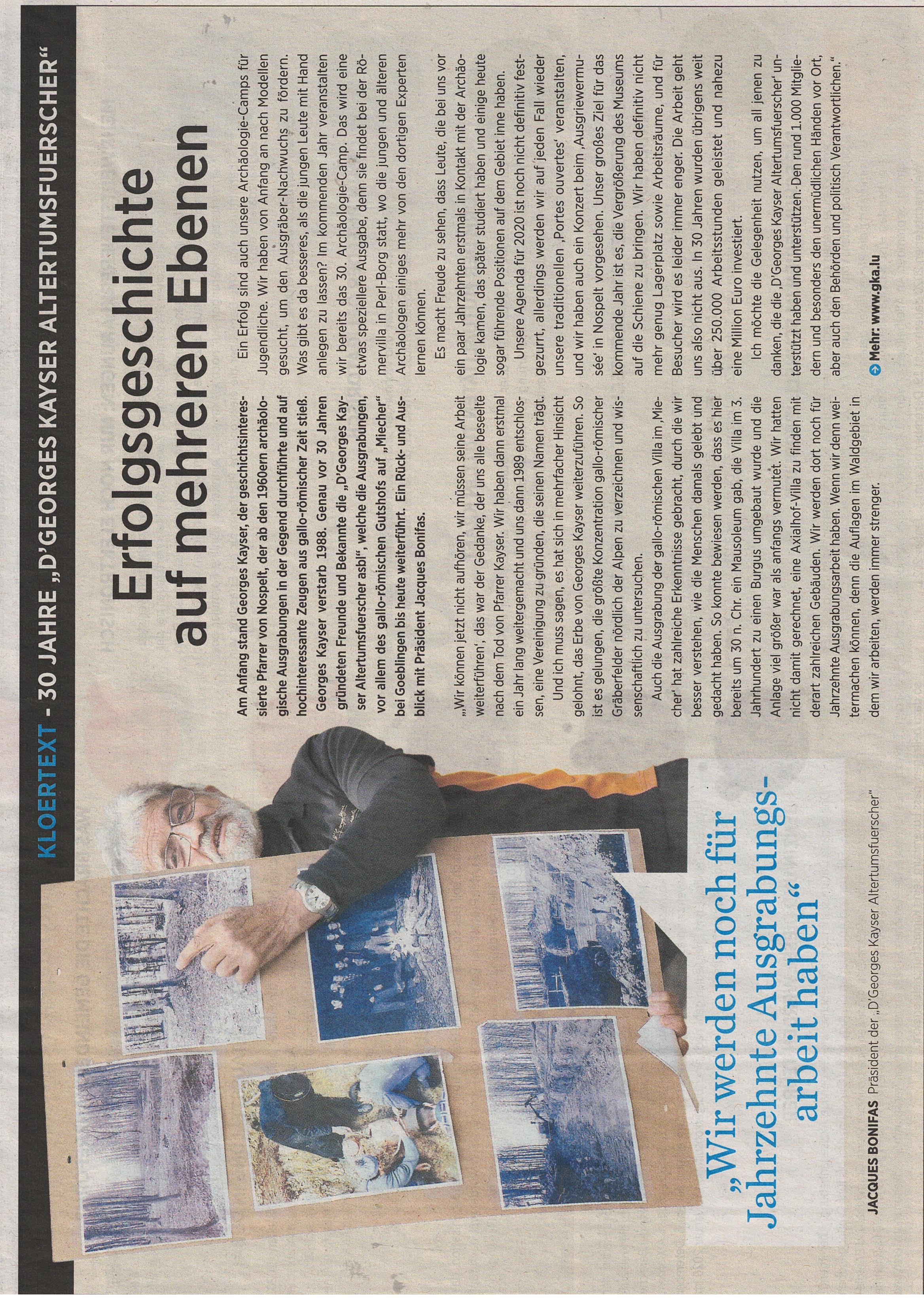 “ D'Georges Kayser Altertumsfuerscher sind ein in Nospelt ansässiger Verein der sich der Archäologie verschrieben hat „